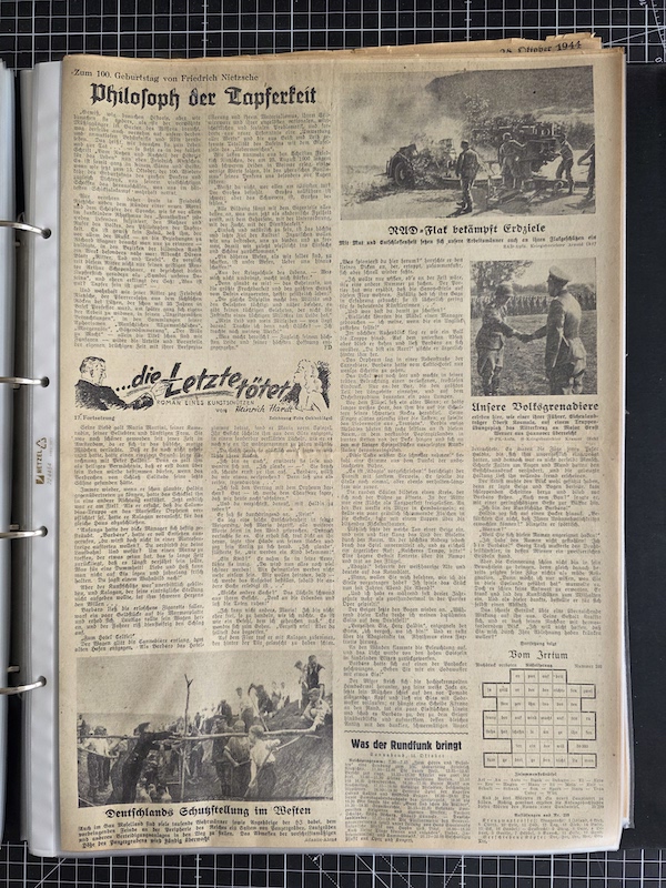 Dies ist eine schöne Sammlung von Belin-Zeitungen, geschützt in einem Ordner. Die meisten davon sind die Berliner Morgenpost, aber es gibt auch einige Berliner Illustrierte Nachtausgabe und Berliner Volkszeitung.