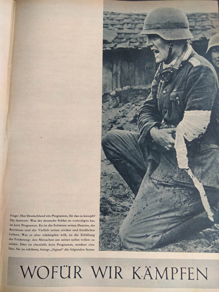Signal was a glossy, illustrated photo journal and army propaganda tool, meant specifically for audiences in neutral, allied, and occupied countries. A German edition was distributed in Switzerland, Axis countries, and German-occupied Europe, but Signal was never distributed in Germany proper.